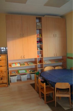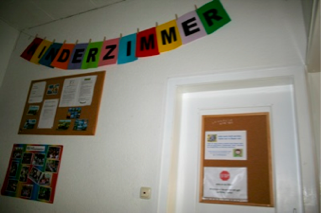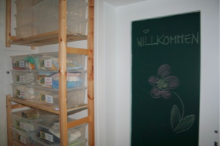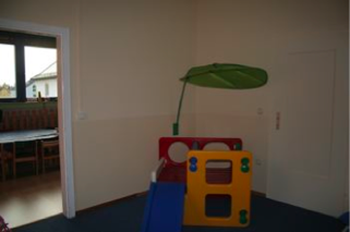 Die Räume des Mini-Kindergartens umfassen 2 Spielräume, eine Küche, wo gemeinsam gefrühstückt wird sowie eine Wickelecke und ein kleines Bad. Dazu besteht die Möglichkeit einen weiteren Raum des Mütterzentrums zum Toben zu nutzen. Und bei gutem Wetter steht der Hof zum Bobbycarfahren etc. bereit.